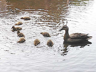 6月の初夏、園内の池にカルガモ(軽鴨)の親子がいました。とても可愛かったです(^^)