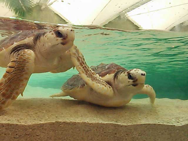 室内の水族館にある、人工波の水槽。ウミガメが波に揺られて気持ちよさそうです(^^)