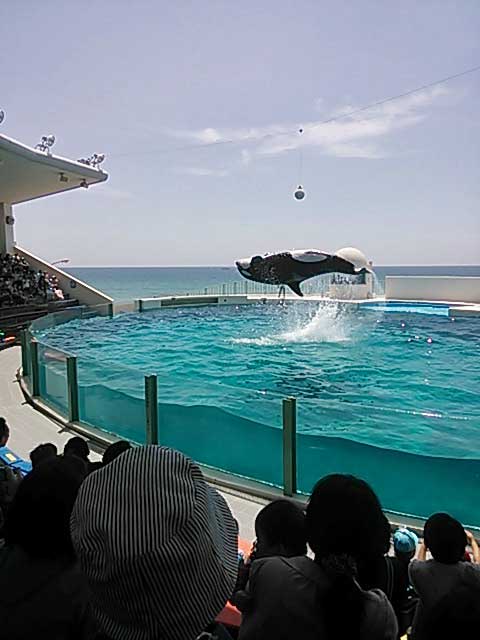シャチのショーはダイナミック!前3列くらいまでは水しぶきがかかります!笑