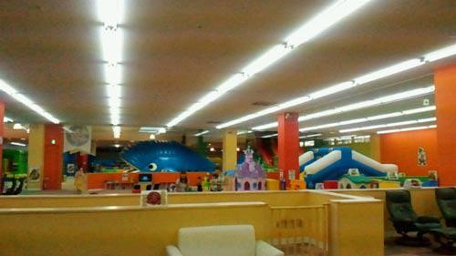 室内はけっこう広々!遊具、ふわふわすべり台、乗れる車のトイ、ゲーム、となんでもあります。晴れの日はもちろん、屋内でこんな施設、雨の日に子供を遊ばせるには特に重宝しますネ!