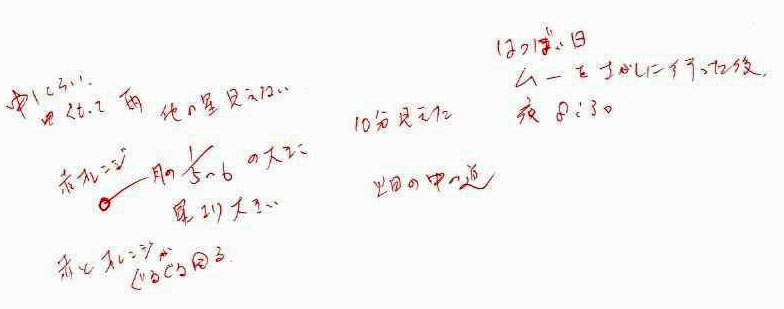 大きさは、星よりも明らかに大きく、といっても月の大きさの5~6分の1程度の大きさだった。