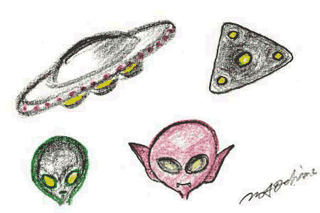 UFO(UAP)とエイリアン(宇宙人)のイラスト(大嶋信之)