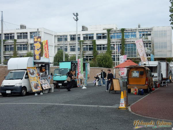 会場の東京国際フランス学園の正門前には、食べ物や飲み物を販売するキッチンカーがいくつか出店しており、賑わいを見せていた。