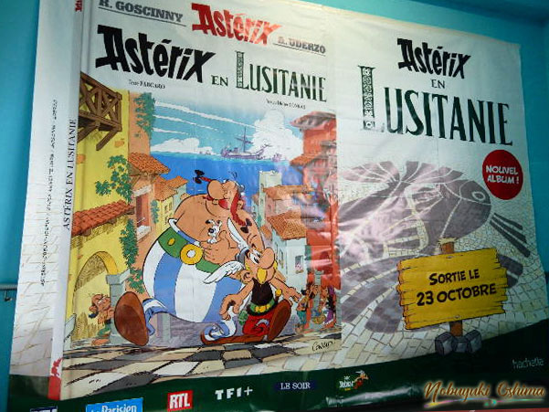 校内の階段の踊り場に貼られた、フランスコミック「Asterix(アステリックス)」のポスター。