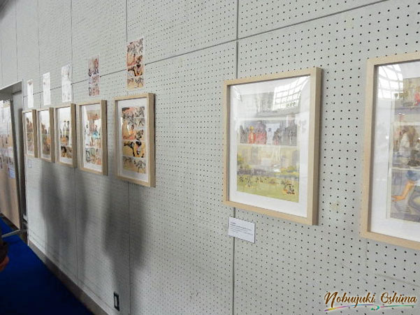 会場の壁に飾られた、漫画の原画(だと思う)。