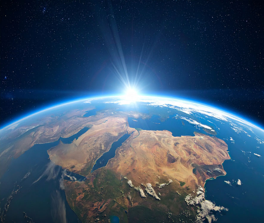 地球と太陽と宇宙の絵