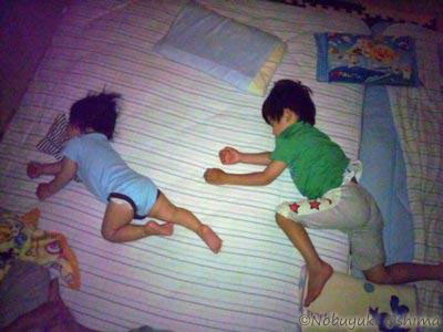 子供の不思議な点のひとつで、兄弟同じポーズで寝ることが実に多い。
